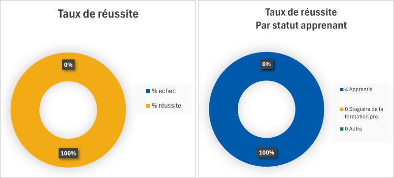 Le taux de réussite de la session d'examen : 100% pour 4 candidats présentés